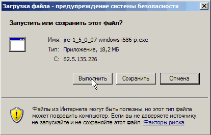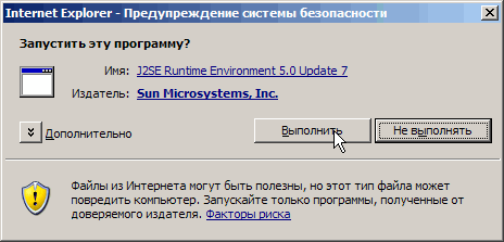 1. Установить Java Runtime Environment версия 5.0 (~ 16 Мб). На предупреждения системы безопасности отвечать утвердительно.